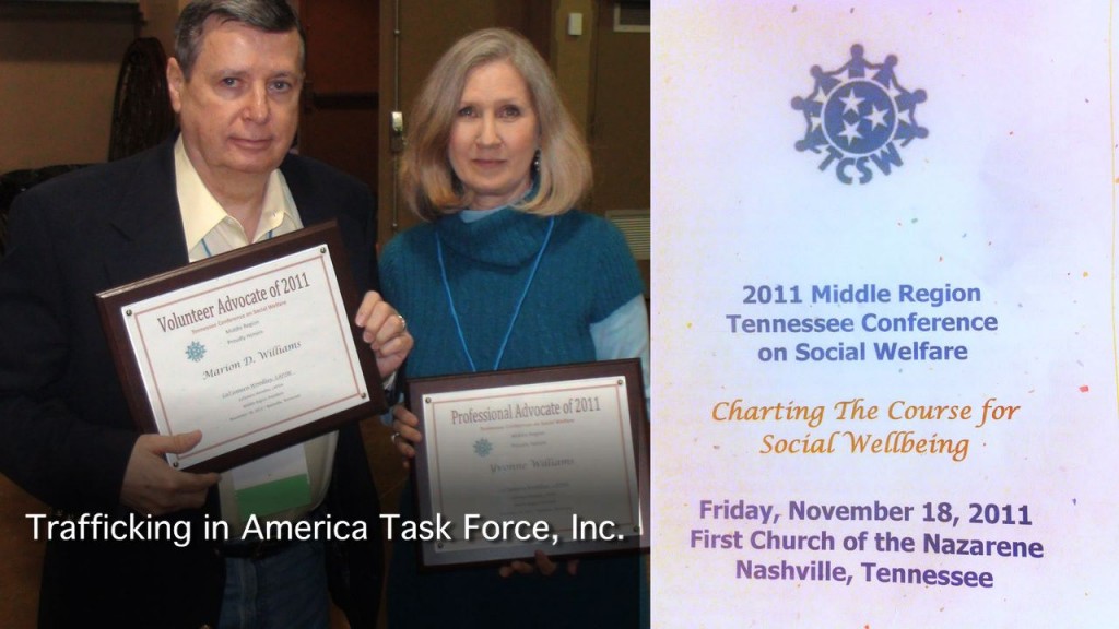 Human trafficking is the subject in the latest video from Russ Anthony 411 and Anthony-Denmark Communications. Yvonne Williams of the Human Trafficking in America Task Force, Inc is the featured speaker. She and her husband, Marion Williams, were recognized as Advocates of the year at the TCSW Middle Region Conference on November 18, 2011. This video contains excerpts from the presentation Human Trafficking: Healing the Soul of America given at conference. Statistics, how to identify and become aware of trafficking and how to mobilize a movement to help stop labor and sex trafficking of women and youth are presented.