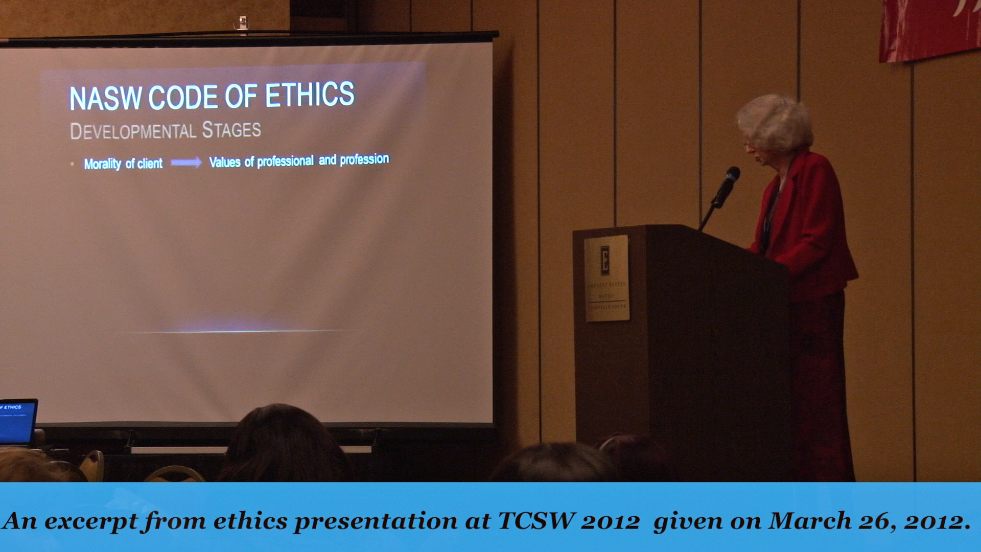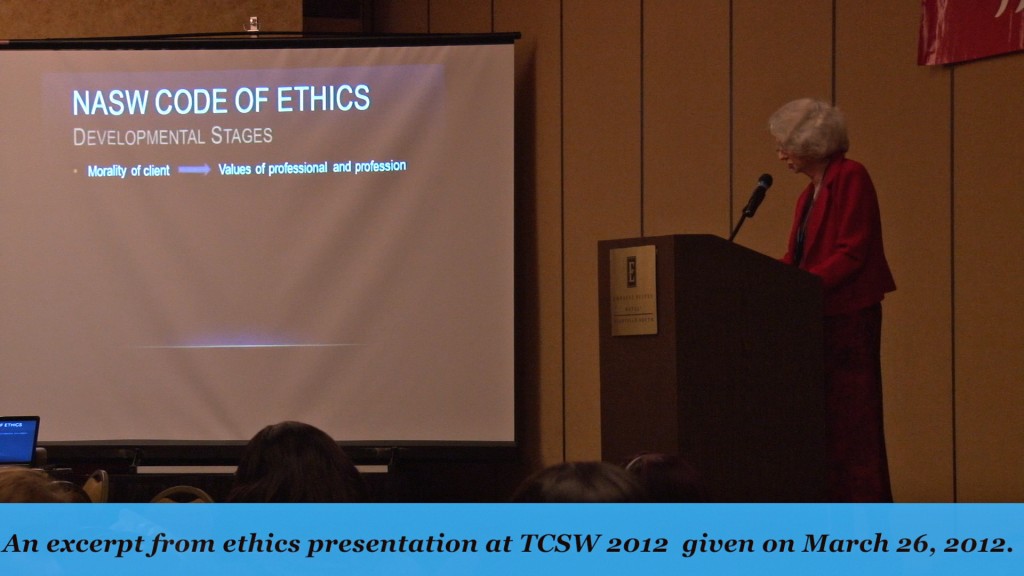 “Social Work Ethics” is the most recent video from Anthony-Denmark Communications. Dorothy H. Gager, LCSW was recorded at TCSW 2012. This excerpt from her presentation, “Navigating When Your Personal and Professional Codes of Ethics Seem at Odds”, explores the NASW Code of Ethics. Ms. Gager discusses some of the history of social work ethics and challenges faced by social workers today. Please be sure to return to my YouTube Channel where you can check out other videos from this and past TCSW events.